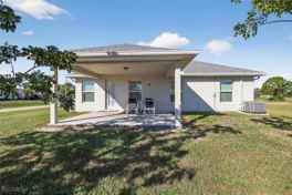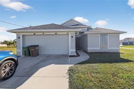 Welcome to your dream home in beautiful Cape Coral! This stunning 4-bedroom, 2-bath residence offers 1,635 square feet of modern comfort and Florida charm. Step inside to an inviting open floor plan featuring a bright and spacious living area, perfect for family gatherings or entertaining guests. The kitchen boasts sleek stainless steel appliances, rich wood cabinetry, and ample counter space for cooking and dining. The primary suite offers a peaceful retreat with a private ensuite bath and generous closet space. Three additional bedrooms provide plenty of flexibility for guests, a home office, or a growing family. Enjoy outdoor living at its finest on the covered patio, overlooking the large backyard- ideal for BBQs, relaxation, or future pool plans. With great curb appeal, a two-car garage, and a desirable location near shopping, dining, and Cape Coral's best parks and schools, this home truly has it all. Don't miss the opportunity to make this move-in ready home yours-schedule your private showing today!
