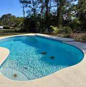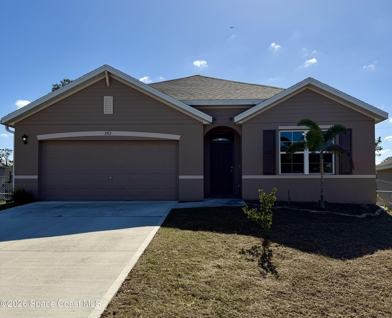 Located in a highly sought-after area of Palm Bay, Florida, this beautiful new construction home truly has it all. Featuring four spacious bedrooms, tile flooring throughout, and an indoor laundry room, the home offers a bright and open floor plan designed for comfortable Florida living. The kitchen is a standout with rich dark cabinetry, light countertops, and seamless flow into the main living area-perfect for entertaining or everyday life. Situated on a high and dry lot, the fully fenced backyard provides an incredibly private setting and showcases a stunning lagoon-shaped in-ground pool, ideal for enjoying Florida summers. Pool service is included, and the washer and dryer convey, making this home truly move-in ready. The primary suite offers a peaceful retreat with a double sink vanity and walk-in shower, while all bedrooms throughout the home are generously sized. Don't miss your opportunity to see this exceptional Palm Bay property before it's gone.