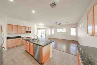 What a find! Beautifully designed 3 bedroom, 2 bath home in the gated Montefino Village community, part of the prestigious Ocotillo Golf Communities. Accessible access at entry and 9 foot ceilings, tile and engineered hardwood floors throughout. Open and spacious Living room and Dining area flows toward a versatile room with French doors, perfect as an office or guest bedroom. The gourmet kitchen boasts maple cabinetry, granite countertops, SS appliances, an island bar, and a built-in desk. A split primary bedroom offers a private ensuite and custom tile accents and a wardrobe room. Enjoy the backyard covered paver patio, artificial turf, and views of a greenbelt. HOA maintains front yard. Plus access to exceptional community amenities of a clubhouse, pool, heated spa, and scenic walking paths past lakes and waterfalls! Conveniently close to shopping, dining, and top ranked schools. Near major freeways and Intel and other major tech employers. Ideal for work, play, and relaxed living. Tour and apply today!