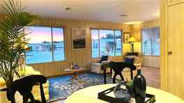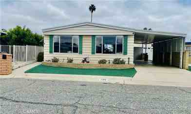 This light and airy home offers 1,440 sq. ft. of comfortable living space in a quiet neighborhood. This beautiful and charming mobile home is a 2BR/2BA with a family room and is move-in ready. The living room is bright with lots of windows, new wood laminate flooring and roller blinds controlled by remote. Dining room has a new wood laminate flooring, built-in hutch and cabinets. The kitchen has a breakfast nook, gas cook top, wall oven, dishwasher and refrigerator. The cozy family room has a ceiling fan, wall mounted TV and a sliding door that opens to the patio area. The indoor laundry room comes complete with Washer and Dryer, overhead cabinets and a large closet. The master suite is spacious, with a walk-in closet, sliding door to the patio area and a large bath area with shower, dual sinks, vanity, linen closet and a built-in hamper. Windows and patio blinds throughout. A direct access to the promenade behind the home allows walking distance to the newly renovated clubhouses and pool within minutes. A MUST SEE!