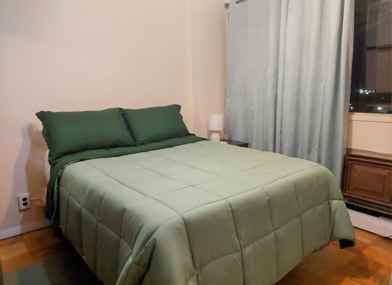 The room is BRIGHT, VERY CLEAN, COZY & fully furnished with a comfortable full size bed, mini-Fridge, Dresser with a big mirror, Night table, a ceiling fan, Portable Closet, computer desk with its chair, television, two windows to a magnificent view, and a Air Conditioner. It is located in one of the top floors of a 15+ stories Co-Op building.