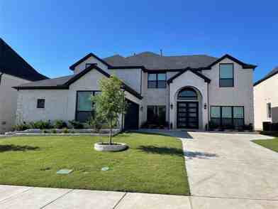 Modern 4,387 sq ft semi-custom home in highly sought-after Prosper ISD with an open floor plan, double-height ceilings, oversized windows, and abundant natural light. Contemporary black-and-white design with premium flooring throughout. Spacious 5 bed 4.5 bath layout with 2 bedrooms on the first floor, plus study, media room, game loft, formal dining, and breakfast nook. Kitchen features stainless steel appliances, a large walk-in pantry, and ample storage. Includes motorized blinds, smart and energy-efficient features, walk-in closets, and an epoxy-finished 2-car garage. Covered patio and large backyard. Community amenities include pickleball courts, walking trails, and a pond. Zoned to Walnut Grove High School, near Whole Foods, shopping, and within 30 minutes of major offices.