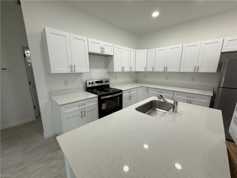 This brand-new 2025 construction in Lehigh Acres offers modern living in a peaceful location. Never lived in, the home features 3 bedrooms, 2 bathrooms, and nearly 1,600 sq ft of thoughtfully designed living space. The open-concept layout showcases a spacious kitchen with a large island—ideal for cooking, gathering, and entertaining. Situated on a 10,000 sq ft lot, the property provides generous outdoor space while maintaining convenient access to local amenities. Additional highlights include Laundry room, Two-car attached garage, Bright, modern finishes throughout A perfect opportunity for anyone seeking a fresh, move-in-ready home in a growing community. Listed by: G & E Realty Group Inc Listing posted by Linda Castanon (786) 933-9164. [SYNDID 4150785 02022026]