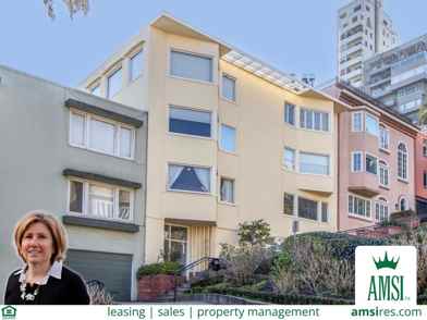 Experience classic San Francisco living in this stunning 2-bedroom, 2-bath Mid-Century flat with a separate office area, located on the world-famous Crooked Street in coveted Russian Hill. Perched on the slope of Lombard Street, the home enjoys sweeping water and city views and exceptional natural light from an abundance of windows throughout.