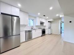 This lower-level unit is part of a newly renovated house and features a private entrance, offering excellent privacy. The unit includes two bedrooms, one bathroom, a full kitchen, and an in-suite washer and dryer. The living area is spacious and functional, with flexible layout options.