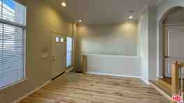 Stunning tri-level townhouse located within a gated community. The main level features an open-concept floor plan with soaring ceilings and a welcoming living room complete with a fireplace and direct access to a spacious private patio. The raised dining area flows into a light-filled kitchen equipped with a center island, abundant counter space, a breakfast nook, and a conveniently located half bath. A side-by-side washer and dryer are neatly tucked away in a dedicated closet. The first level offers direct access to the attached garage along with a versatile bonus room ideal for an office, gym, or additional storage. The top floor includes three generously sized bedrooms, each with high ceilings and large closets. The hallway showcases a beautiful skylight that fills the space with natural light and a full bathroom. The primary suite includes two closets and a private en suite bathroom featuring a soaking tub, separate shower, and double vanity. Additional highlights include central A/C and heat and two side-by-side parking spaces within the attached garage. Situated in a premier location near Fairfax, Culver City, Beverlywood, and more. Pets considered, tenant pays all utilities except water.