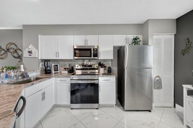 Must see! Highly desirable Cypress Bend community! Completely renovated 2 bedroom 2 bath east facing with views of the lake, watch the sunrise from your Balcony. Beautiful polished porcelain tiles throughout, updated open kitchen with gorgeous gray and white granite counter tops, newer stainless steel appliances, updated modern bathrooms, includes washer & dryer. Custom painted and in turn key condition. Newer impact windows & sliding doors. All age community features walking, biking trails, tennis, pickleball courts, pool, hot tub, clubhouse, library, BBQ areas, pet friendly, fitness center, Just a short distance to the New Pomp, south Florida's latest entertainment destination coming soon including Harrahs Casino, Top Golf, Restaurants and more! 700 Credit Score Required by HOA