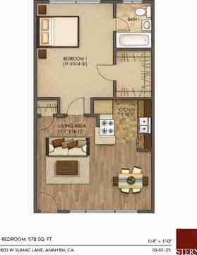 This remodeled 1 Bedroom, single level floor plan is located at 1803 W Sumac in Anaheim, California. The Sumac Courtyard is located less than 2 miles from Disneyland and the Anaheim Convention Center. It is located with proximity to retail amenities, schools and parks. The property is in the process of being completely renovated. These renovations will include new roof, new flooring, new paint, new appliances, new windows, remodeled laundry rooms, remodeled garages, upgraded landscaping, 24-hour security system, new security gates, new exterior lighting and all new finishes and appliances in the unit. The property has onsite management as well as professional offsite management. Each unit comes with a 1 car garage. There is a center courtyard with patio tables and chairs for the resident’s use. There are laundry facilities at the property.