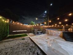 Two entertainment areas with lighting — great for gatherings and outdoor nights