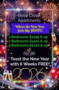 We invite you to come by and tour today or apply online www.BelleCreekApartments.com!