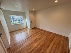 Enjoy living in a completely remodeled apartment located in a highly desirable Midtown Ventura Neighborhood! Walking in your front door you are greeted with beautiful refinished hardwood flooring, and a roomy living area featuring fresh paint and a ton of natural sunlight. The kitchen has a small eat-in dining area and has been completely remodeled with shaker style cabinets featuring a bold pop of color, quartz countertops, and stacked subway tile backsplash. Top of the line stainless steel gas stove, dishwasher and built-in microwave is provided. The bedroom has continued refinished hardwood flooring and features great closet space. The bathroom has also been tastefully remodeled with a quartz vanity and large walk in shower. Other desirable upgrades include recessed lighting, vinyl windows and AIR CONDITIONING! Enjoy having a private stackable washer/dryer located in a laundry room just off the kitchen.