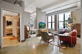 This beautiful loft-style condo features 13-foot ceilings, enormous operable windows that fill the space with natural light and city ambiance, and abundant closet space throughout. The open-concept layout highlights exposed brick and timber beams, a stylish kitchen with granite countertops, stainless steel appliances, and an inviting island perfect for entertaining. Enjoy the ease of in-unit laundry and the comfort of a well-maintained, historic building.
