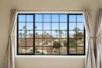 Absolutely spectacular, unobstructed panoramic ocean views from this 2BR/2BA, top floor condo in much sought after Surfside IV - gated community. Directly across from the Port Hueneme beach and pier. Ocean and white-water views right as you walk in the front door. Top floor, elevator access condos very rarely come up in this community. Soaring ceilings, spacious, oversized eat in kitchen with upgraded appliances+ formal dining area and sunken living room with a gas fireplace and access to a spacious patio. Upgraded bathrooms, windows and sliders. Bamboo flooring and new carpet in formal living room and bedrooms. Fall asleep to the calming sounds of the ocean waves and enjoy the cool ocean breeze and then wake up to this truly amazing ocean view every morning from the primary bedroom which also opens out to the patio with direct views of the beach, pier and Channel Islands. The primary bathroom has a spacious soaking tub, shower and two separate vanities. Ceiling fans in formal dining area and both bedrooms. Laundry closet with side-by-side washer and dryer included. One car garage plus 2 extra unassigned parking spaces. Clubhouse amenities include a fitness center, banquet area with fully equipped kitchen which can be reserved for private events, library, game room with Ping-Pong and billiards, piano, sauna, newly remodeled spa and pool that is heated year-round. Third floor has spacious deck for viewing 4th of July fireworks and spectacular mountain views. Moranda Park is located directly behind the complex with multiple lighted pickleball and tennis courts. Perfect for full time living or a vacation get away with a resort like feel!