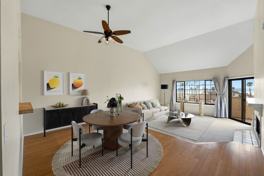 High Ceilings, Ceiling Fan(s), Sunken Living Room, Living Room Balcony, Eating Area, Separated Eating Area, Eating Area In Living Room, Eat-in Kitchen