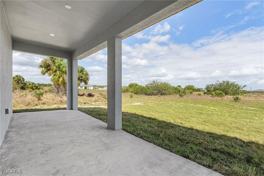 This new construction home offers 3 bedrooms with a Den and 2 bathrooms with tile flooring throughout, impact-resistant doors and windows, 8-foot interior doors, and 9-foot 4-inch ceilings. The kitchen features stainless steel appliances, level-2 granite countertops, a large island, and soft-close cabinets. The primary suite includes his and hers walk-in closets, a walk-in shower, and double sinks. Additional features include an automatic garage door opener, ceiling fans in the bedrooms and great room, a laundry room with sink, an irrigation system, front gutters, and a large lanai under trusses. Pets are approved case by case.