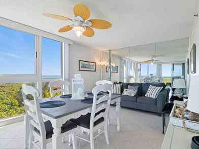 Available May 1, 2026 for the off-season at $3,000/mnth. Enjoy the direct ocean views & all of the amenities that Aquanique has to offer, at off-season rates! Min. 3 month rental, can be longer. Also available for the 2027 In-Season at $5,000/mnth. Meticulously maintained 2 bed/ 2 bath oceanfront condo, with 1-car garage! Every room offers ocean views. Step out onto the expansive wrap around balcony and take in the stunning sun rise each morning while enjoying a cup of coffee. Both bedrooms have large custom walk-in closets. Primary bathroom features granite countertops, dual sinks, a separate shower, and a spa tub. The guest bathroom includes a new vanity with granite countertops. Fully furnished, with a king-sized bed in the primary bedroom and a queen-sized bed in the guest bed