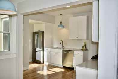 Large one bedroom apartment with garage spot! Entire apartment has been newly renovated! kitchen has new appliances (including dishwasher) & lots of counter space. There is an eating nook with lots of natural light. The bathroom features an oversized clawfoot tub a vintage pedestal sink and beautiful tile floors. The entire apartment has newly installed hardwood floors and new windows. Laundry, trash and heat included.