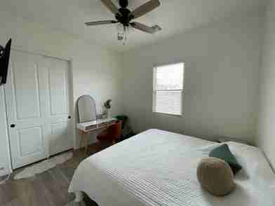 Furnished room with private bathroom in a quiet home nestled among the foothills of the White Tank Mountains in the West Valley of Phoenix. The home is only 2 years old and features 10 ft ceilings and modern fixtures. Kitchen, dining and living room are all shared spaces! I want you to feel right at home!
