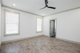 Step into modern elegance with this stunning home featuring an open-concept kitchen complete with sleek cabinetry, a bold accent wall, and a spacious quartz island perfect for gathering and entertaining. The home’s light-filled rooms showcase stylish wood-look tile flooring throughout, offering both durability and sophistication. Bedrooms are designed for comfort, highlighted by clean lines, neutral tones, and upgraded fixtures like a contemporary ceiling fans. Thoughtful details such as custom trim work, built-in accents, and a cozy fireplace elevate the charm, while spacious closets provide practical storage solutions. This home blends style and functionality, creating the perfect space for everyday living and special moments alike.