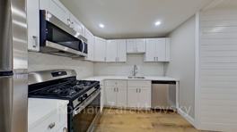 This apartment features new modern plank flooring, freshly painted walls, new light fixtures, newly renovated kitchen with new full-size stainless-steel appliances, including a dishwasher, electric stove, disposal, and built-in microwave. There is a sunny and spacious living room with built-in A/C, ample closet space throughout, a fully remodeled bathroom, one large bedroom, and one medium sized bedroom. The rent includes heat, hot/cold water, and 1 off-street parking space.