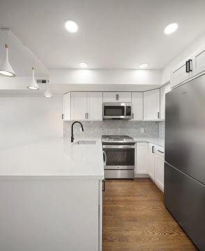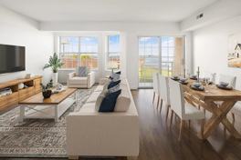 Stunning 2 Bed 2 Bath with water views. On the first level you will find the first of the 2 bedrooms a full bath as well as the very spacious brand new renovated open kitchen with a large Island and new stainless appliances .The open floor plan living room/ dining looks out to a stunning view of the long island sound. And hardwood floors throughout. Upstairs is a generous bedroom and ensuite full bath and W/D in unit. Tons of Closet space, Central Air and an assigned covered parking spot to sweeten the deal. Pets are welcome!