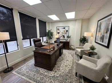 Beautifully designed office suite includes 4 private offices, reception area, conference room, storage closet and kitchenette (mini fridge included upon move in). The newly renovated 1,247 square feet space includes lots of natural light, wood look flooring and new paint. Looking for less space? A portion of the office can be removed – see leasing office for details.
