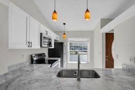 One or more photo(s) has been virtually staged. Welcome to Belle Oaks, a quiet, centrally located community in Largo, Florida, where everything you need is close by. This recently renovated 2-bedroom, 2-bath villa is bright, comfortable, and thoughtfully laid out. The kitchen has been updated with white shaker cabinets and quartz countertops, and new luxury vinyl flooring runs throughout the living space and bedrooms for a clean, modern feel. An in-unit laundry room makes everyday living easy. The primary bedroom feels like a private retreat, featuring a walk-in closet, an ensuite bathroom with a walk-in shower, and sliding doors that open to an enclosed patio—a great spot to enjoy your morning coffee or unwind in the evening. The split bedroom layout offers privacy for guests or family, with the second bedroom filled with soft morning light and located next to a full bath with a tub/shower combo. The open living and dining area offers plenty of space for both relaxing and entertaining. Out back, you’ll find a small green space perfect for lawn chairs, grilling, or enjoying the Florida sunshine. With two community pools—one just steps from your front door—you can start or end your day with a swim whenever the mood strikes. You’re close to shopping, restaurants, and parks, with six county parks right in Largo. Clearwater and Indian Rocks beaches are less than five miles away, Clearwater–St. Pete Airport is about 15 minutes away, and Tampa International Airport is an easy drive—