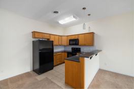 This unique 2-bedroom, 2-bathroom apartment is a perfect fit for night shift workers or those who prefer a quiet, controlled sleeping environment, as both bedrooms are windowless to provide a natural blackout effect. The unit features an open-concept living area with plush carpeting and a fully equipped kitchen complete with honey-oak cabinetry, a breakfast bar, and a built-in microwave. Residents will enjoy the convenience of an in-unit washer and dryer, two full bathrooms, and front-door parking in a private lot.