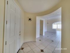 Beautiful single-story home with 3-car garage and great curb appeal! This bright and open floor plan features a spacious kitchen with ample cabinet space, center island, and stainless-steel refrigerator, opening to large living and dining areas. Tile flooring throughout main living spaces and carpet in bedrooms. Primary suite includes large walk-in closet and en-suite bathroom with dual sinks, separate shower and soaking tub. Covered patio with low-maintenance desert landscaping—perfect for relaxing or entertaining. Convenient location near shopping, dining, and freeway access. Must see!