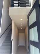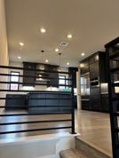 The next level offers: A convenient half bathroom, ideally located for guests. A spacious secondary bedroom with generous closet space. A beautifully finished bathroom with: Quartz countertops, Stainless steel fixtures, Oversized soaking tub. A private laundry area with washer and dryer, built-in cabinets, and shelving discreetly hidden behind double doors for a clean, streamlined look.