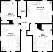 This is a 2-bed made into a 3-bed by using the living room as a bedroom. The eat-in kitchen is large enough to use as a common area.