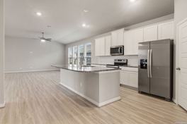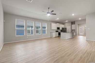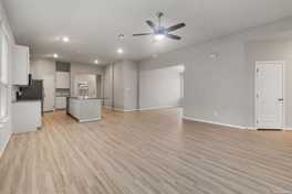Single-story home built in 2024 with an open floor plan and one living area. Features include an island kitchen with solid countertops, walk-in pantry, and included appliances. The primary bedroom is split from secondary bedrooms and offers a walk-in closet and full bath with double vanity and walk-in shower. Exterior highlights include a covered patio, privacy fence, sprinkler system, and attached two-car garage. - Application fee $75/adult; approval requires security deposit (varies) + $175 lease admin fee within 24 hrs; $10/mo admin fee; renters insurance required.