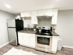 This unit is a basement apartment that doesn't feel like one once you get inside. It's 250 sq ft with a full kitchen. All basic amenities for the kitchen and bathroom are provided. This is an inner city neighborhood so there is some sound and upstairs tenants are kind and friendly. small fully fenced yard attached to unit.