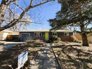 This is a 3-bedroom, 1-bathroom ranch home centrally located in Boulder. The interior features hard surfaces and decorative wallpaper throughout, creating a unique and polished aesthetic. The front living room is anchored by a wood-burning stove, providing a cozy focal point for the space. The updated kitchen is well-equipped with stainless steel appliances, butcher block countertops, and a separate prep area with an additional sink for convenience. Further living space is available in the converted, finished garage, which also houses the washer and dryer. For cooling, ceiling fans are installed in all three bedrooms. The exterior of the property offers off-street driveway parking and a large, functional yard. The backyard space includes a covered patio, built-in flower beds, a storage shed and is fully fenced.