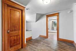 The unit offers generous living space, updated flooring throughout, fresh paint, recessed lighting, and large windows that bring in plenty of natural light. Sloped ceilings and thoughtful layout give the apartment character while maintaining functionality.