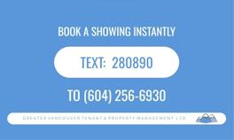 Please text us as per the information in the photos or contact us using the buttons available. If the home is ready for showings we will reach out to schedule a private showing with you.Address: 4160 Albert St, Burnaby The home is available March 1st ! We are offering a spacious, well kept 2 bedroom/2 bathroom condo located in Burnaby. The home is located on the 4th floor with a private balcony and great views. Other great features include kitchen appliances (fridge, new stove, and dishwasher), tile & carpet flooring, master bedroom with ensuite, in suite washer & dryer, and approximately 962 square feet of living space. There is 1 parking spot and storage locker included. The home is located in the Burnaby Heights area with schools close by, and is 13 minutes walk to Eileen Dailly Community Centre, McGill Library, and the large Confederation Park. Walking distance to Cafe Artigiano, JJ Bean, Starbucks, Ayoub's Dried Fruit & Nuts, Cioffi's Meat Market & Deli, Anton's Pasta Bar, fresh produce farm markets, Safeway, A&W, BC Liquor Store, banks and small businesses, boutique stores and unique restaurants. Steps from bus stops for express R5 bus to downtown / SFU, plus other bus lines. Brentwood Skytrain Station, Brentwood Mall, The Solo District and Costco are about a 6 minute drive away. - Neighbourhood: Burnaby Heights - Type of Unit: Condo - Approximate Square Footage: 962 - View Direction: South - Number of Bedrooms: 2 - Number of Bathrooms: 2 - Heating / Cooling: Baseboard / None - Number of Parking Spots and Type: 1 Spot Secured - Storage Locker: Yes - Pet Policy: No pet allowed