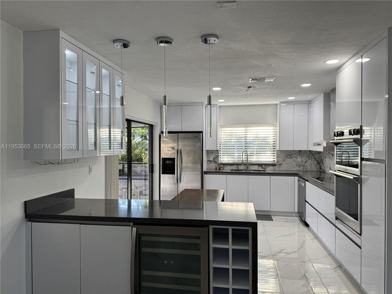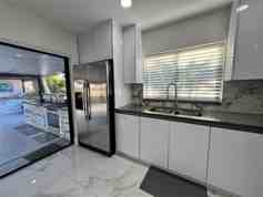 Spacious, fully remodeled 4-bedroom, 3.5-bath home offering modern comfort and exceptional functionality, plus an additional outdoor half bath--perfect for guests while entertaining. Features a beautifully updated kitchen with wine cooler, street gas, and two primary bedrooms--one with a private separate entrance, ideal for extended family or added privacy. Enjoy a large backyard designed for entertaining, featuring an expansive covered patio with outdoor kitchen, gas range, two mini refrigerators, stainless steel cabinets, ample counter space, and washer/dryer. A separate roofed outdoor entertaining structure offers additional counter space, stainless steel cabinetry, refrigerator, and gas BBQ. Large yard with side space for boat or additional vehicle...