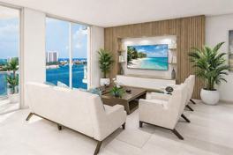 Nautalus 220 is a new luxury waterfront development located alongside the Marina. This condo residence is two, 24 story towers, 1-acre outdoor amenity deck, Seahawk prime Restaurant, retail shops, café, & professional office suites. Everything you could need in one place with resort style living perfected. This unique corner 2/2 residence is beautifully appointed with 10-foot ceilings & hurricane impact glass, porcelain tile throughout, wine cooler, waterfall quartz counter tops w/European cabinetry. Amazing owner suite with large bathroom featuring freestanding, soaking tub and two terraces w/east water & west city views. Breathtaking views of the Atlantic Ocean alongside an expanding marina. Enjoy resort style, living with exceptional amenities & unobstructed water views.