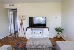 This thoughtfully designed home features a bright, open layout with stylish decor and modern updates throughout. The spacious living room includes a cozy sofa, Smart TV, and dedicated desk area for remote work. The fully equipped kitchen offers everything you need full-size refrigerator, stove, microwave, dishwasher, coffee maker, cookware, and utensils making meal prep easy.