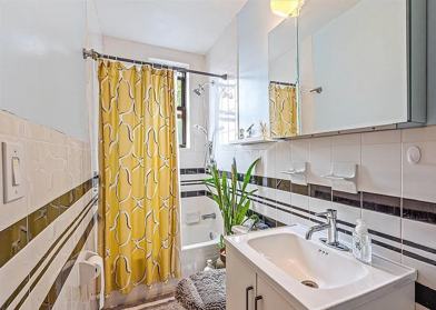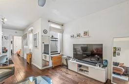 Nestled on the top floor of a charming pre-war building, this 1-bedroom, 1 bathroom railroad-style unit is one of just six units in the building (only 2 units per floor). Infused with artistic flair and contemporary style, the space exudes warmth and character. Highlights include soft-close Brookhaven kitchen cabinets, Quartz countertops, stainless steel appliances, updated double panel windows throughout, custom-built radiator covers, ceiling fans and Armstrong engineered hardwood floors with a sound reducing underlayment pad for quiet and comfort. The bedroom offers generous space, two large windows that fill the room with natural light, and a spacious closet.