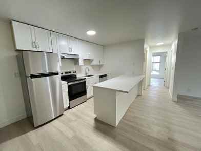 Open floor plan living room and kitchen. Ample space with island counter and room for seating. Plenty of counter and cabinet space. Kitchen features brand new appliances and dishwasher.