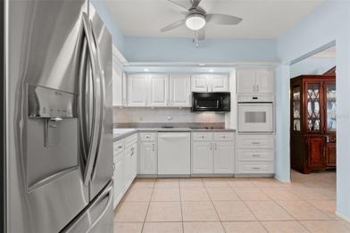 You will love this top-floor unit! Step inside through the keyless entry and you’re immediately greeted by a large picture windows overlooking lush trees. The home features tile and luxury vinyl flooring—no carpet anywhere. The living area includes crown molding, an oversized main space, and a bonus/sun room, where you can enjoy picturesque views of the golf course. The kitchen offers raised-panel cabinetry, beautiful countertops, brushed nickel hardware, a wall mounted oven and microwave, located conveniently to make cooking a breeze, and a oversized refrigerator pull-out freezer drawer. A generous storage area can serve as a pantry or additional household storage. The primary bedroom suite includes a full wall of closets, an updated ceiling fan, and a beautifully refreshed bathroom with a step-in shower, raised-panel cabinetry, brushed nickel fixtures, and a stone countertop. Another picture window frames peaceful greenery just outside. The front bedroom features a wide window inviting abundant natural light, an oversized closet, and an updated ceiling fan. The second bathroom offers a full tub/shower combination, updated lighting, a modern vanity with an inlaid sink, brushed nickel hardware, and a stone countertop. All interior doors have been upgraded to heavy two-panel designs, adding a touch of elegance throughout. The community offers golf course access, two pools, a recreation center, fitness center, shuffleboard courts, tennis courts, hobby and cultural rooms, and more. Its central location provides easy access to beaches, the airport, great dining, shopping, and endless recreation.