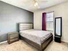 This home features 3 Bedrooms, 2.5 Baths, and a 1 car garage with a driveway for 2 additional cars. This desirable community is centrally located and gated. If you are looking for a open floor plan, you will enjoy entertaining guest in this spacious sun-filled living/dining room and eat-in kitchen with a breakfast bar. Features include an on-suite bathroom, double-sink vanity, walk-in shower, linen closet and walk-in closet, and washer & Dryer on the second floor for convenience. The home is located 10 miles from Disney-Surrounded by shopping centers, restaurants, movie theaters, golf courses and lakes. Easy access to major highways and airport. Home will have fresh paint and new carpets before move-in date!