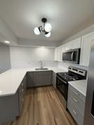 Completely renovated inside and out apartment building. This is 1 bed/1 bath. First unit done in a 6 plex. End unit with no unit above it. Laundry hookup in unit. EVERYTHING is NEW! New lvp flooring, brand new kitchen including quartz countertops with bar seating. New appliances and slow close cabinets. New bathroom including bathtub/surround, toilet, vanity, and tile flooring. New furnace/AC. New windows. Large maintenance/utility storage area. Lake view across street. Make this your sanctuary today!