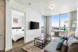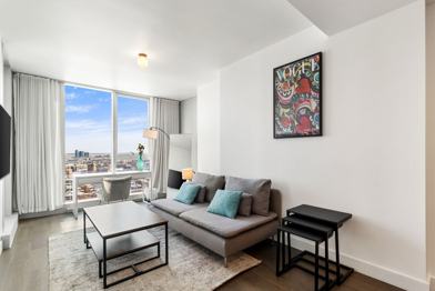 Brand new magnificent 1 bedroom, 1 bathroom luxury condo in downtown Montreal with access to common areas (2 pools (outdoor/Indoor), 2 saunas (dry & wet), 4 gym, sky lounge on the 38th floor, BBQs, terrace, 24/7 security, and so much more!) This unit has all you need to make you feel at home. Suitable for travelers, business professionals, relocating families, and international students. A 5-minute walk from the Metro, grocery store, coffee shop, and restaurants.$4000/month (everything included - high-speed wifi, 50"HD TV, indoor parking, electricity, fully furnished)