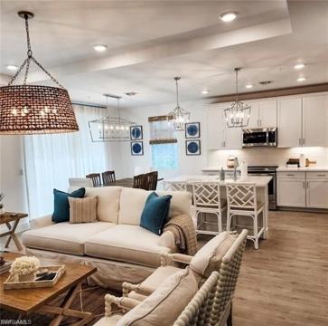One of a kind & beautifully furnished!! Coach home in the Villa Mar Bonita Beach community! This home comes fully furnished with up-to-date window treatments, furniture, accessories and carpet free! Comfortably sleeps up to 8 people. The kitchen is stocked with all appliances and gadgets you could imagine! Primary bathroom is a full shower upgraded with a handheld shower head. The additional bathrooms are shower/tub combination with upgraded handheld or rain shower head. Washer/dryer in unit and single car garage for your vehicle or storage. Screened in lanai overlooking the lake with brand new outdoor furniture. Private in unit elevator with direct access to the unit on the second floor. Separate guest entrance as well! Enjoy the brand new community fitness center and pool. Located just give minutes from Barefoot Beach and Bonita Beach, 10 minutes from Coconut Point shopping center, restaurants, and more!