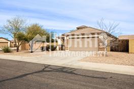 Welcome to your new home located in the heart of Casa Grande on a very quiet cul-de-sac street. The home features three bedrooms and two bathrooms with a great floorplan. You will enter into the family room with a half wall opening up to the kitchen and dining area. The kitchen is equipped with all appliances including a refrigerator, electric stove, microwave and dishwasher. You will also find a two car garage with a washer and dryer already hooked up. When you step out the back sliding glass door you will find a patio for relaxing and an easy to maintain yard.