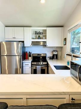 Welcome home to this peaceful, beautifully updated, modern, furnished guesthouse located in the highly desirable North Clairemont community. Open and bright with vaulted ceilings that instantly elevate the space. The full-size kitchen shines with quartz countertops and stainless steel appliances, making everyday meals feel a little more special. Curl up and unwind with a 43-inch Samsung Smart TV and high-speed WiFi. Air conditioning and an in-unit washer and dryer add ease and comfort to daily living. Private backyard with a covered patio, perfect for morning coffee, evening breezes, or a quiet moment to recharge. An ideal retreat for professionals, government contractors, or traveling nurses. This move-in ready home offers comfort, convenience, and a vibrant lifestyle just a short distance to everything including beaches, downtown, and easy access to major freeways. Parking included. Turnkey and move-in ready. Just bring your luggage!