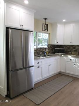 Pet friendly consideration. Enter into this highly upgraded single house on a large lot on the boarders on Boyle Heights and East L A, . There is a large back yard with a concrete open patio area and a large grassy area for entertaining functions and pet accommodation. This home offers two off-street parking spaces (tandem) behind a new sliding gated area. A front concrete and tiled front patio / yard space for your convenience and enjoyment. The front walk-up gate and driveway sliding gates are deadbolt locked. The home has many amenities such as: Central air conditioning and heat / Freshly painted interior and exterior / Wood laminate flooring throughout (no carpet) / Wood plantation shutters on all windows / Newer double pane windows / Recessed ceiling lights / Ceiling fans in the living room, dining area and two of the three bedrooms. The kitchen has been completely remodeled providing: New cabinets / Granit countertops / Decorated glass backsplash / Farm sink with extended neck faucet / Garbage disposal / New 3 door stainless steel refrigerator / 5 burner stainless steel gas stove / Rangehood, and so much more. The large bathroom has been completely remodeled, boasting: Ceramic tile flooring / Oversized walk-in shower (no bathtub) with floor to ceiling tiles inside, just to name a few upgrades. The rear bedroom has its own door that leads into the backyard. The back yard offers two storage sheds for your personal items, a mix of a large open concrete patio and a large grassy area, excellent for entertaining and pets. Fruit trees and a new fiberglass six-foot fencing all around for privacy. There are two locking side gates from the front yard for your pets (breed and size considerations). There are a washer and gas dryer provided outside the back door, off the kitchen. Located near the intersection of Olympic Blvd. and Indiana Ave,, adjacent to the 5, 60 and 710 freeways. This home is ready to be called your own!
