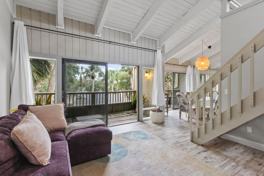 Inside, over 1,600 square feet of open, light-filled living features soaring vaulted ceilings, skylights, and expansive windows that create a constant connection to the outdoors. Three private balconies deliver an unmatched indoor-outdoor experience, including direct views of the community’s largest and most beautiful pool, located just behind the home — perfect for morning coffee, golden-hour evenings, or peaceful nights under the stars.